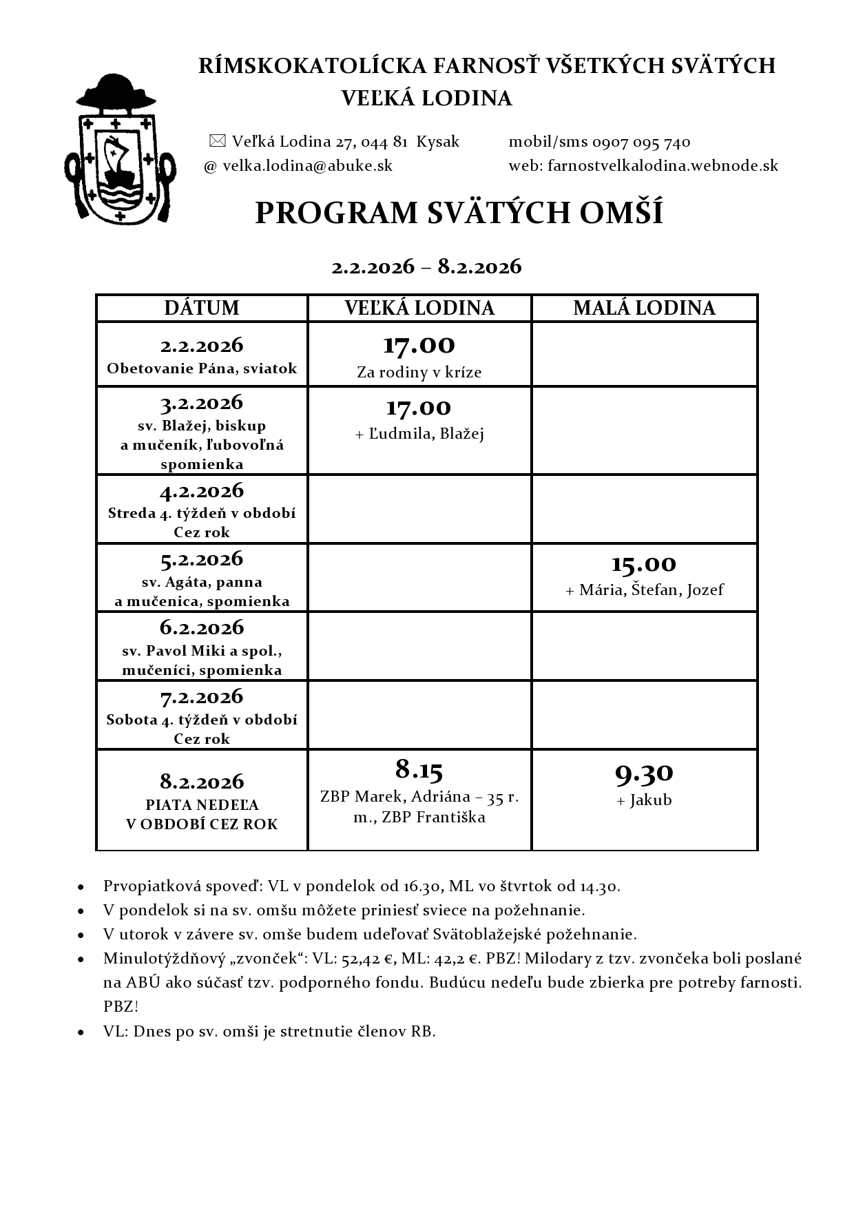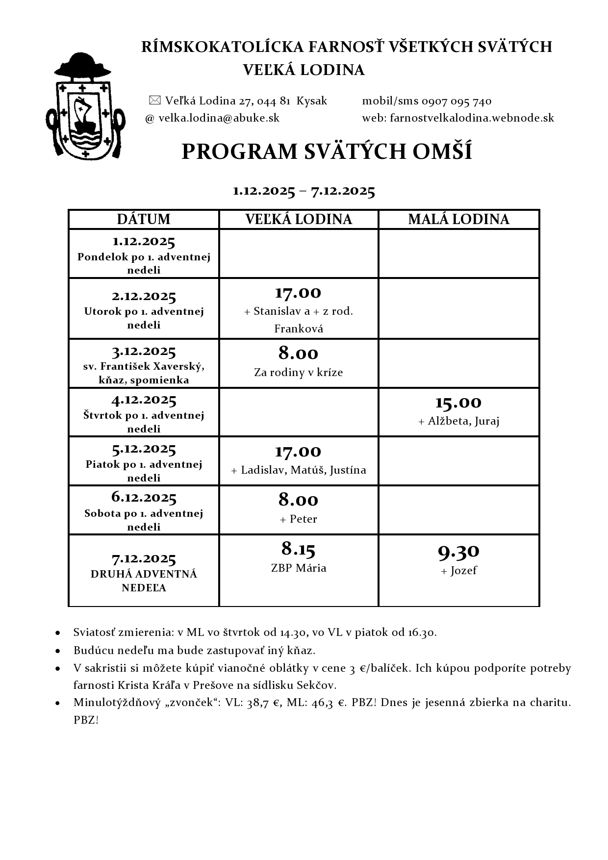 FARNOSŤ VŠETKÝCH SVÄTÝCH